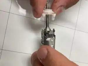 Используйте заострённый инструмент, чтобы нажать на защёлки по обеим сторонам белой сборки.