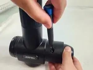 Снимите крышку массажного пистолета, следите, чтобы задняя часть с интегральной схемой не отвалилась — удерживайте её при снятии крышки.