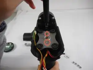 Снимите два серебристых винта 8,24 мм в верхней части рычага с помощью отвертки Phillips #00.