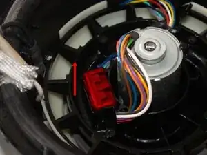 Установите разъём на место и убедитесь, что жгут проводов размещён вокруг мотора