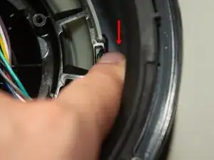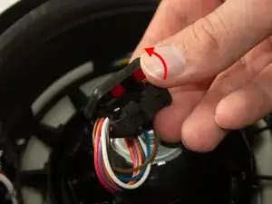 Нажмите на фиксатор контакта и разъедините разъём, чтобы отсоединить моторный узел