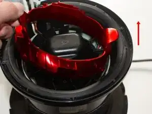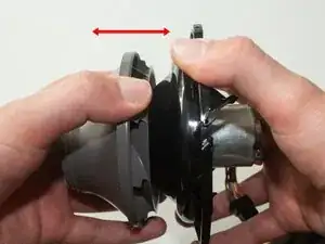 Постукивайте до тех пор, пока вал не станет заподлицо с рабочим колесом. Вы увидите, как опускается чёрный пластиковый упор у основания.