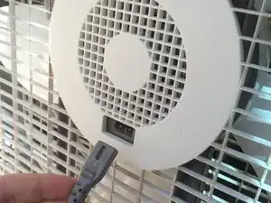 Теперь, когда ваш вентилятор отключен, положите его на ровную поверхность так, чтобы марка была обращена вверх.