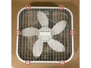Переверните вентилятор, чтобы получить доступ к этим шести винтам.