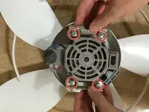 Удалите четыре винта, чтобы снять мотор и лопасти вентилятора из корпуса.