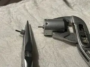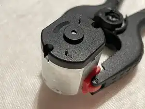 Крепление вала на оригинальном моторе FF-128PD, похоже, уникально для этой модели, поэтому нам нужно будет снять его с оригинального мотора и установить на новый перед началом пайки. Вы можете использовать плоскогубцы для получения рычага на конце вала.