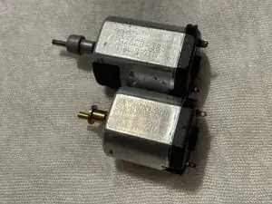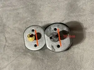 Оригинальный мотор для этих машинок - 3,6 В постоянного тока с номером детали FF-128PD. Но его невозможно найти в интернете. Вам нужно найти замену с расстоянием между винтами 16 мм и той же или меньшей шириной/глубиной. FF-360SA является подходящей заменой, кроме крепления вала.