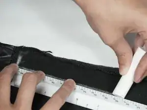 Обведите прямоугольник размером 18 дюймов в длину и половина дюйма в высоту на изнанке излишка кожаного остатка.