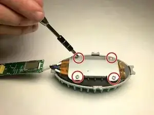 Удалите четыре винта типа Phillips #2 длиной 6 мм, удерживающих тепловой экран на задней стороне щетины.