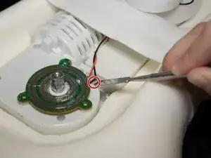 Используйте лопатку, чтобы отсоединить провод от белой главной платы.