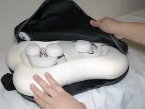 Расстегните чехол. Молния находится сзади массажной подушки.