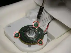 Крестовой отвёрткой JIS №1 выверните три винта, отмеченных на изображении кружками.