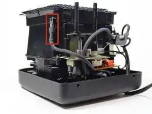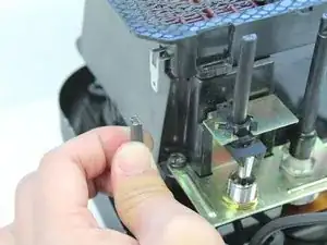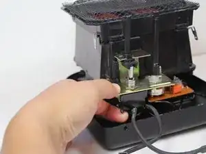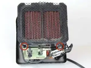Удалите два винта Phillips 10 мм с помощью крестовой отвёртки #2. Один крепит золотую металлическую скобу к кожуху нагревательной спирали, другой — держатель предохранителя к кожуху нагревательной спирали.