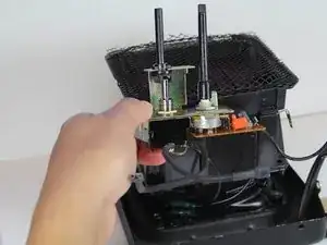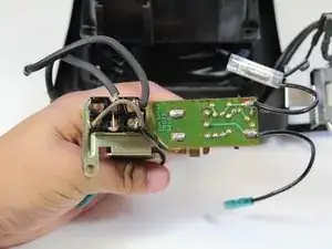 Возьмите блок переключателя и платы управления одной рукой и поднимите его вверх. Потребуется пошевелить его, чтобы освободить. Во время пошевеливания поднимайте его вверх, пока он не выйдет из пластиковых направляющих.