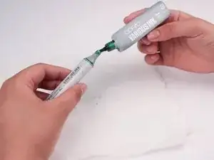 Снимите крышку с бутылки с чернилами и наклоните контейнер, чтобы начать заполнять маркер.