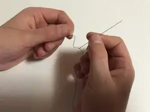 Пропустите иглу через петлю и затяните нить.