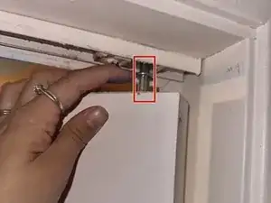 Снимите штифт, надавив вниз по оси штифта и затем потянув дверь вниз и от направляющей к себе.