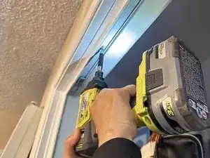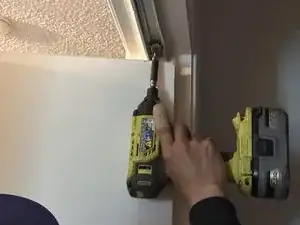 Используйте электродрель, чтобы удалить все винты из старой направляющей и отделить её от верхней части коробки шкафа.