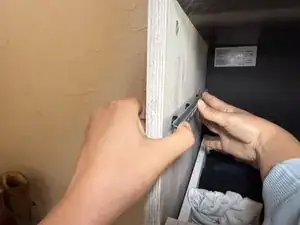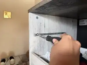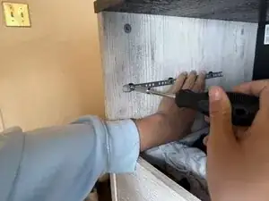Прикрутите направляющую обратно к ящику, поворачивая отвёртку по часовой стрелке.