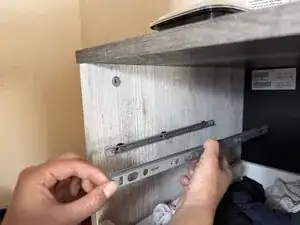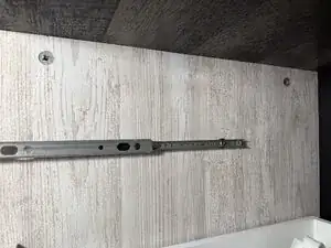 Используйте отвёртку и выкрутите винт, соединяющий кронштейн направляющей с ящиком.