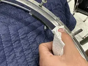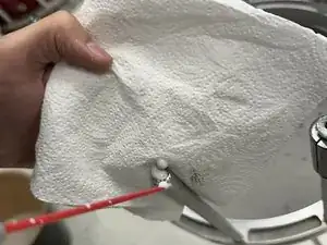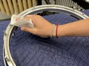 Используйте микрофибровую тряпку или бумажные полотенца, чтобы удалить мусор с снятого обода барабана.