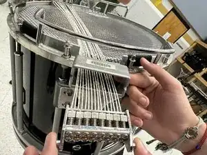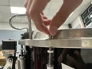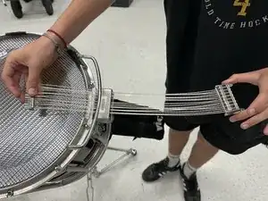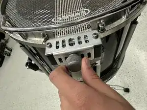 Ослабьте рукоятку на стороне механизмa проволок снейров (полосы, проходящие по низу барабана), чтобы снять напряжение с снейров.