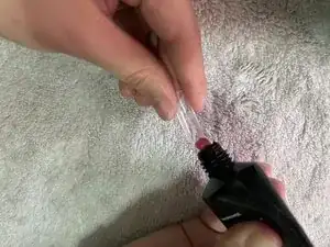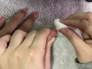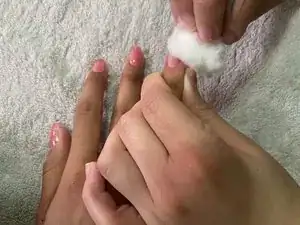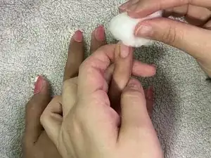 Смочите ватный диск спиртом и протрите ноготь, пока весь липкий слой не исчезнет.