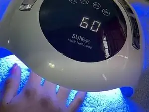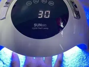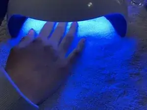 Перед началом убедитесь, что в процессе полимеризации, если Вы испытываете резкие всплески температуры или дискомфорт, немедленно выньте руку из лампы и дайте ногтю остыть.