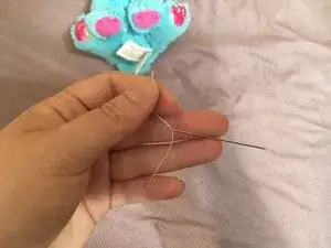 Нанизайте иглу примерно 18 дюймами нити такого же цвета, как мех или существующие стежки медвежонка.
