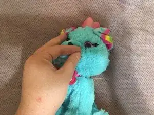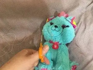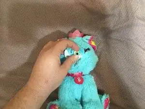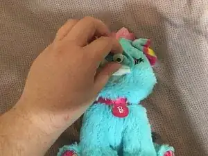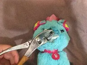 Удалите пластиковую втулку сзади носа медвежонка (если она всё ещё на месте). Возможно, придётся воспользоваться плоскогубцами.