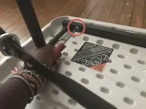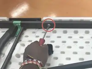 Вкрутите четыре винта с прорезью обратно в раму с помощью плоской отвёртки 6 мм. Убедитесь, что вся сторона, в которую вставлена новая ножка, снова надёжно соединена со столом.