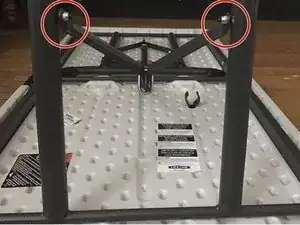 Используйте шестигранный ключ 5/32" или гаечный ключ 19 мм, чтобы снять два стальных шестигранных винта 8-18 из нержавеющей стали с распорок стола.
