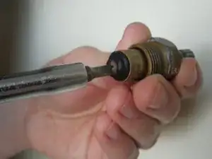 С помощью плоской отвертки снимите винт с конца картриджа стебля.