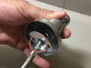Вставьте отвёртку в нижнее отверстие резьбовой вставки и поверните против часовой стрелки, чтобы удалить резьбовую вставку.