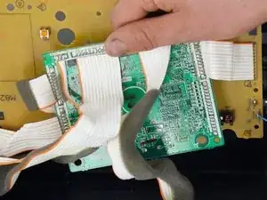 Убедитесь, что вы не разорвали и не натянули соединения между желтой основной платой и центральной панелью.