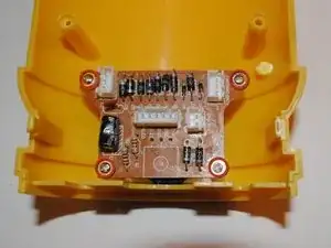 При сборке передней и задней панелей убедитесь, что вы протягиваете выступающие винты от основания купола через соответствующие направляющие, вырезанные в верхней части передней и задней панелей корпуса.