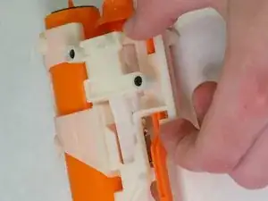 Снимите внешнюю крышку Nerf-оружия (крышка и скользящая затворная панель, 12 винтов Phillips #0).