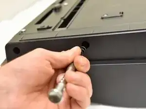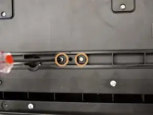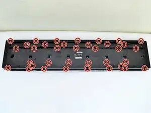 Снимите 36 серебристых винтов 10 мм с J-образной головкой с помощью отвёртки J1 с задней панели.