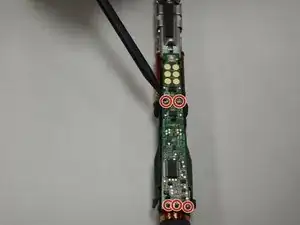 Используйте паяльник, чтобы распаять контакты, отмеченные F1, C5, R7, R6 и JP1.
