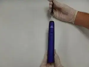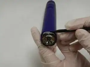 Переверните зубную щетку и нажмите на металлический наконечник, пока внутренности и корпус не отделятся.