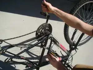 Переверните велосипед вверх дном так, чтобы он опирался на сиденье и руль. Велосипед должен самостоятельно стоять.