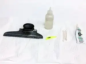 Необходимые принадлежности для этого шага: зажим, новое перо, ацетон, бумажное полотенце, ватная палочка и клей для флетчинга.
