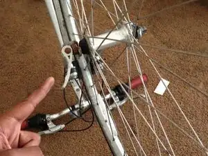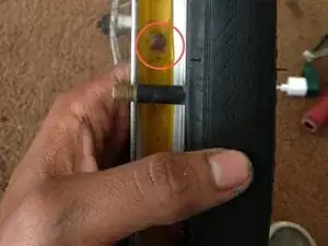 Затем найдите отверстие в ободе и проденьте через него ниппель, установив его на место.