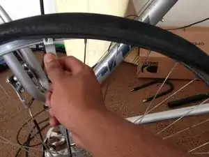 Закончите установку, надев шину обратно на колесо, следя за тем, чтобы на камере не было складок и заломов.