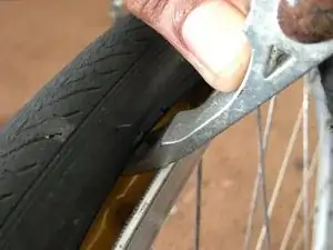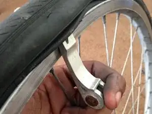 Затем вставьте инструмент для шины под колесо, прямо над ободом.