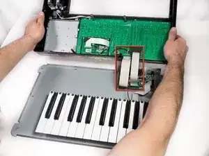 Будьте осторожны при выполнении предыдущего шага, чтобы не порвать ленточные кабели, соединяющие обе части.