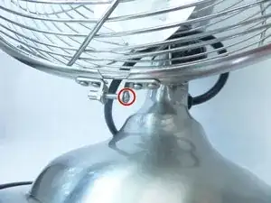 Удалите винт 20 мм, который крепит вентиляционное кольцо, расположенное в нижней части решётки вентилятора, при помощи отвертки Phillips #3.