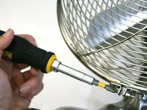 Чтобы получить доступ к лопастям вентилятора или корпусу мотора, необходимо снять переднюю часть решётки вентилятора.
