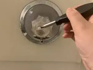 С помощью отвертки Phillips #2 отвинтите винт внутри ручки. Тяните, чтобы снять душевую ручку.