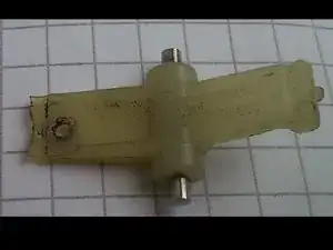 В моем случае белый пластиковый рычаг был сломан внутри (слева на картинке), одна небольшая часть осталась прикрепленной к вертикальному движущему валу переключателя воды (см. фотографии).